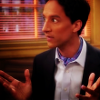 Description: Abed in a suit, gesturing, looking impressed